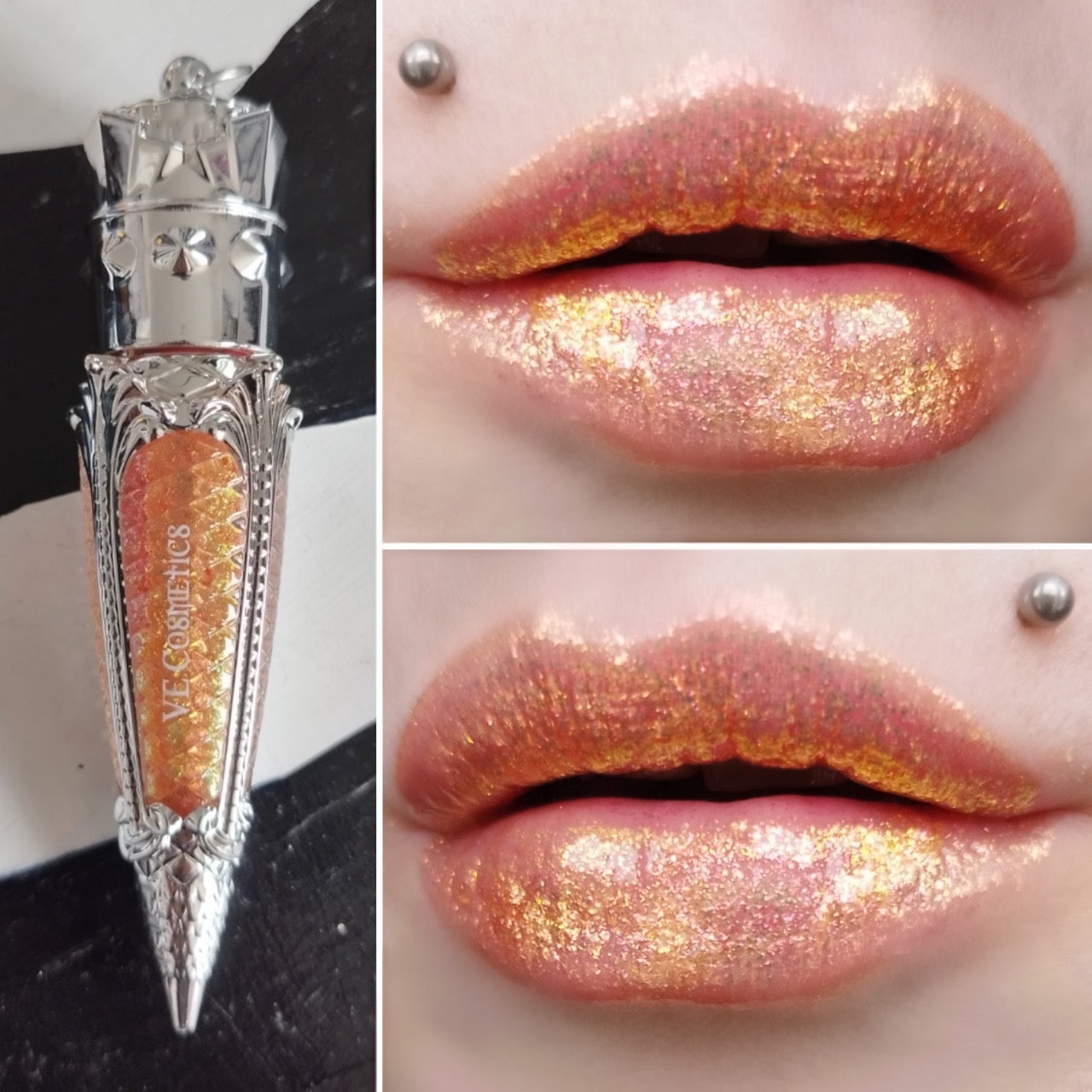 Ergot is a dangerously dazzling multichrome gloss that flickers through orange, pink, gold, green, and peach — a shifting spectrum of surreal shimmer. Inspired by the intoxicating legacy of the ergot fungus, long associated with hallucination, hysteria, and the whispered origins of witch trials, this shade is pure spellwork for the lips.