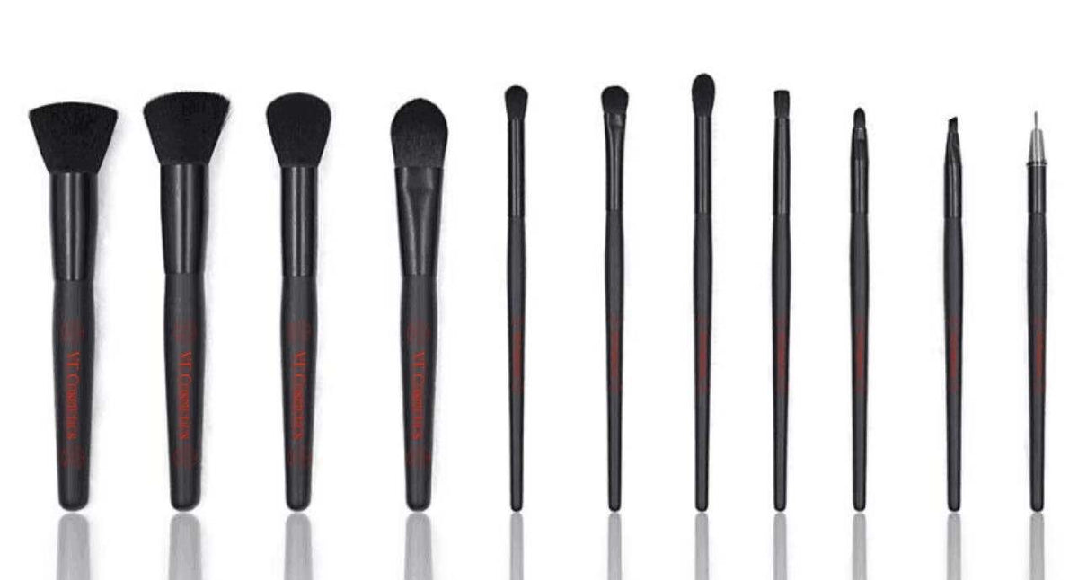 11-Piece Vegan Brush Collection in Black Faux Leather Pouch