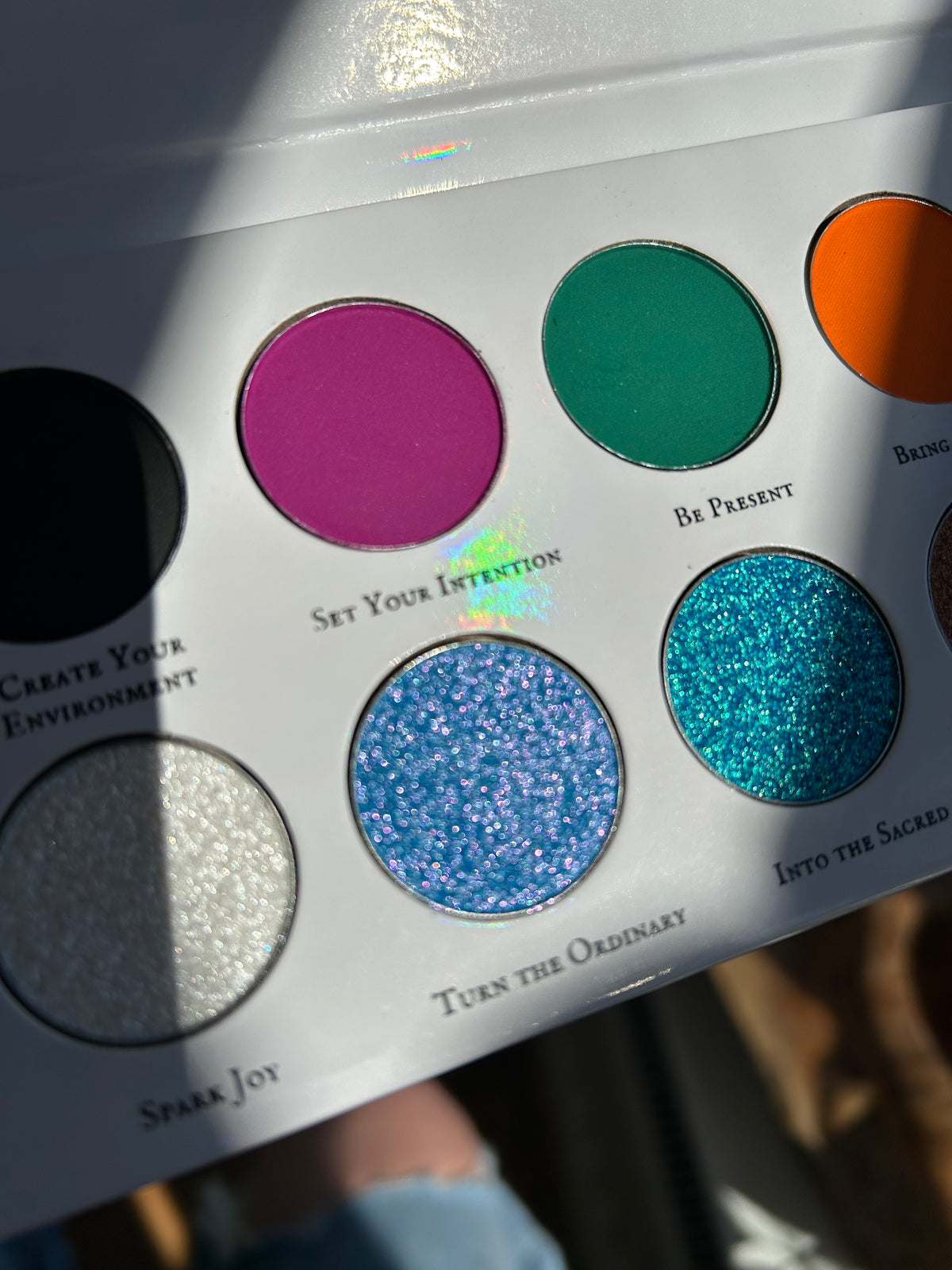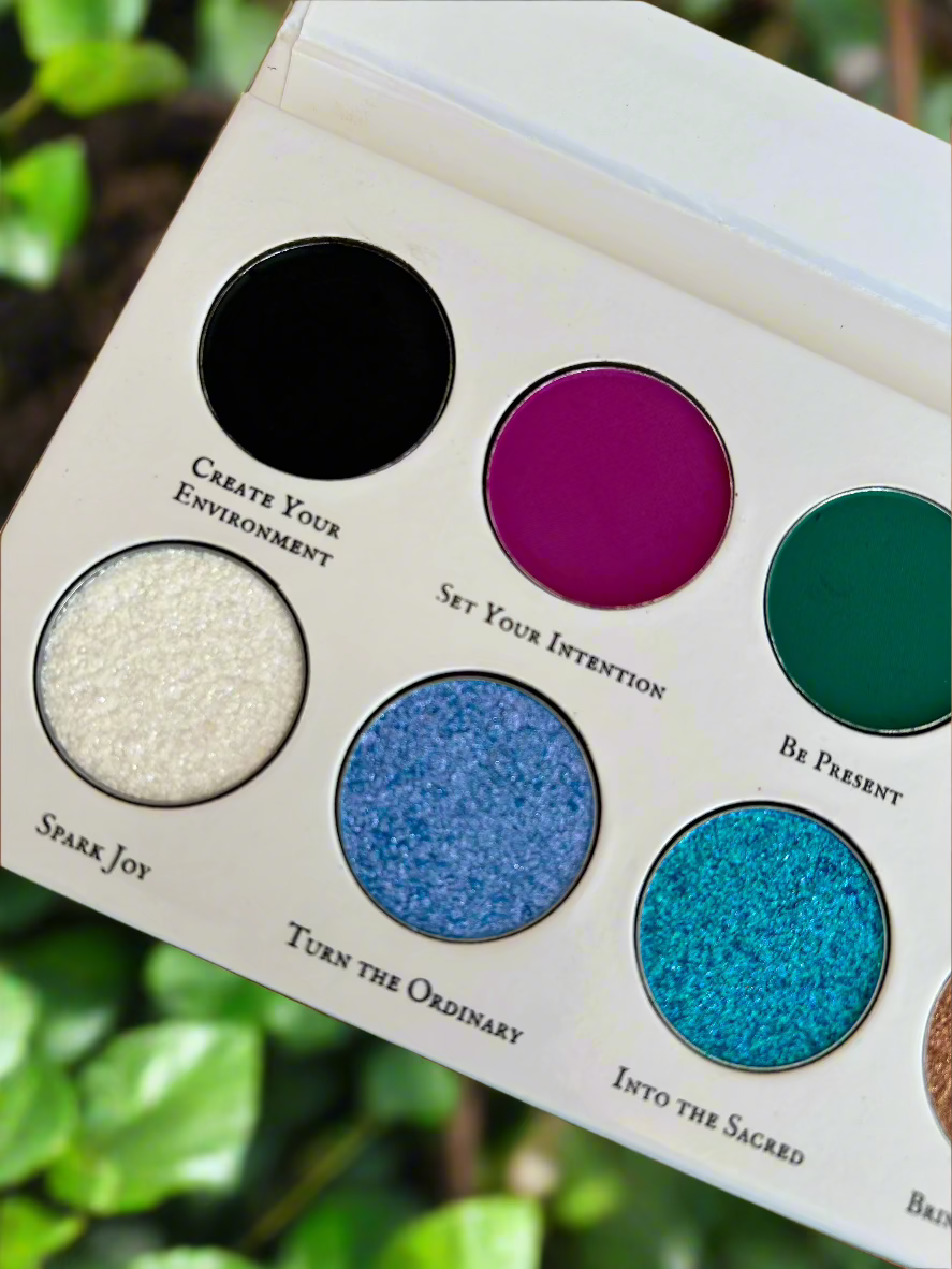 A spellbinding fusion of 6 rich, jewel-toned mattes and 6 shimmer-shifting companions, this palette invites you to step beyond the veil and into full ceremonial power.