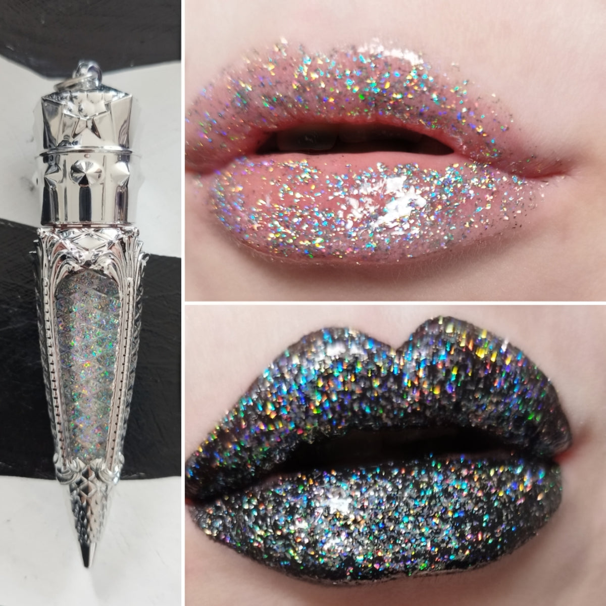 Hemlock is a sheer gloss infused with holographic sparkle — delicate yet deadly in its beauty. Like frozen breath on a winter night, it adds an ethereal shimmer when worn alone, or a spectral, dimensional gleam when layered over deeper shades (especially black).