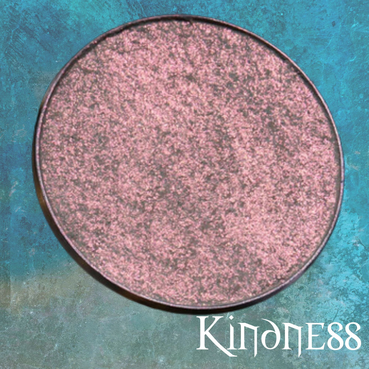 Kindness is no meek shimmer — it’s a radiant red highlighter forged for bold hearts and blooming witches. With a midsummer magick glow, this versatile illuminator shifts between blush-toned light, molten inner-corner pop, and shimmering eyeshadow charm.