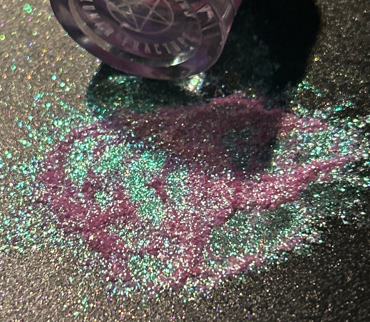 It feels lighter than some of the deeper Arcane Shards — but don’t mistake that for softness. Layered or applied over black, the reflect sharpens dramatically, turning prismatic and almost holographic.