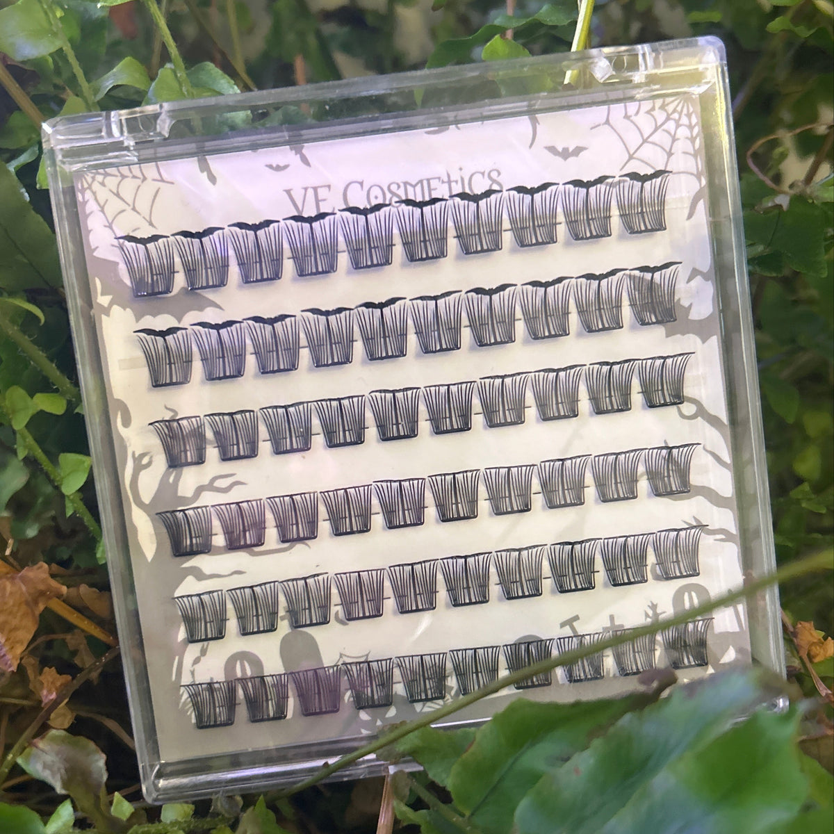 Take flight after dark with Nocturne, our pre-glued bat-wing cluster lashes designed for those who crave a gothic edge. Each cluster features an elongated centre with subtle bat shapes that fan outward, creating a look that’s equal parts haunting and enchanting. With 30 clusters in every box, you can conjure at least three complete lash sets that last up to 5 days.